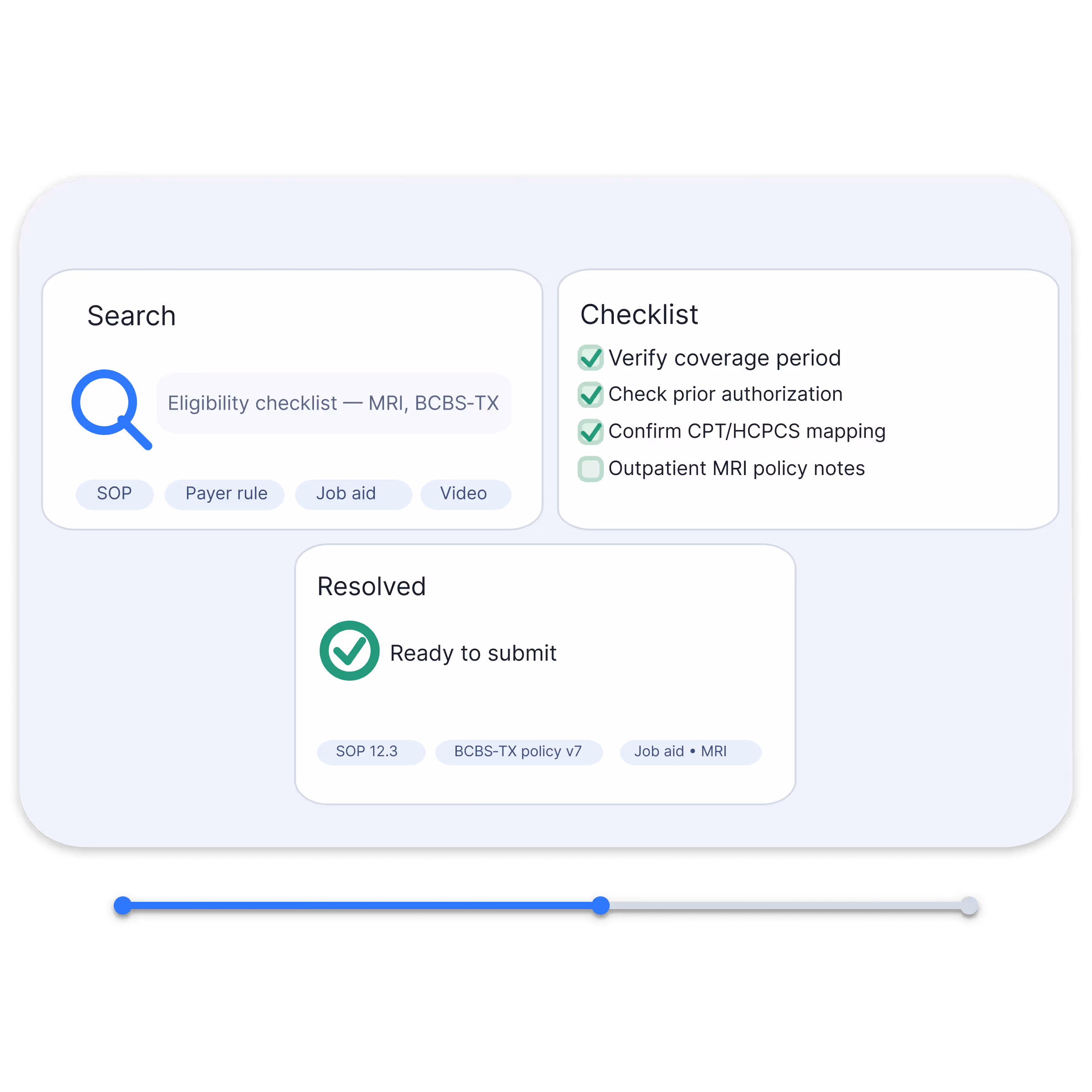 Deliver organization-specific answers tailored to your policies, payer contracts, and workflows, providing more than generic guidance and ensuring accuracy for real-world RCM operations.